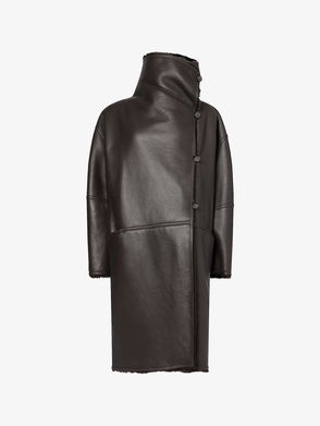 Shearling-Lined Wrap Leather Coat