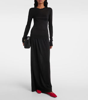 Round-Neck Long-Sleeves Woven Maxi Dress