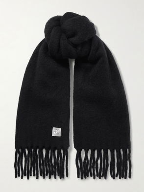 Fringed Appliquéd Brushed Alpaca-Blend Scarf