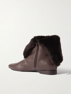 The Off-Duty Faux Fur-Trimmed Textured-Leather Ankle Boots