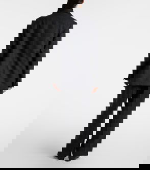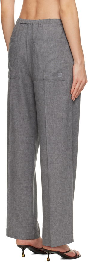 Skirt-Embellishment Straight-Leg Wool Trousers
