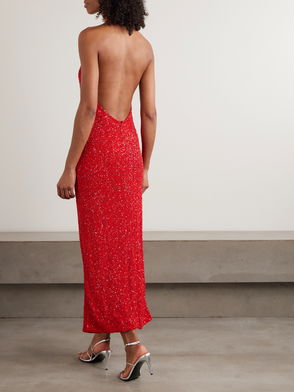 Collette Sequin-embellished Mesh Halterneck Maxi Dress