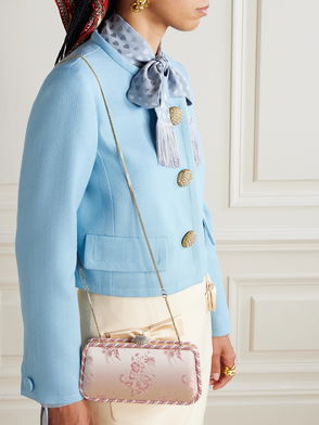Carry Secrets Cord-trimmed Satin-jacquard Clutch