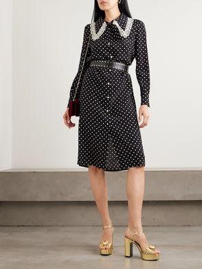 Lace-trimmed Polka-dot Printed Silk Crepe De Chine Midi Dress