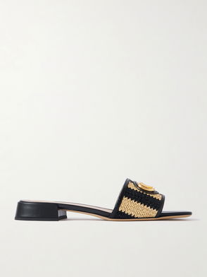 VLogo Embellished Leather-trimmed Striped Raffia Slides