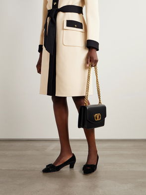V Logo Brand-Embossed Leather Heeled Courts