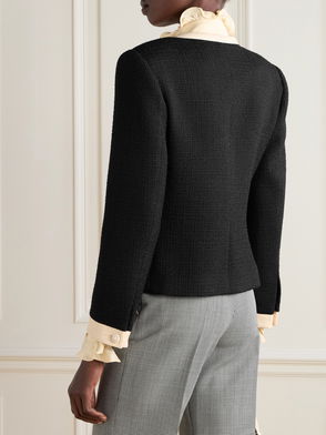 Crystal-embellished Chiffon-trimmed Metallic Tweed Jacket