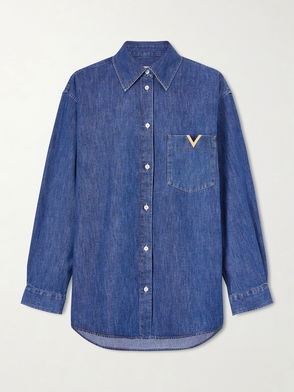Floral-Appliquéd Cotton-Poplin Midi Shirt Dress