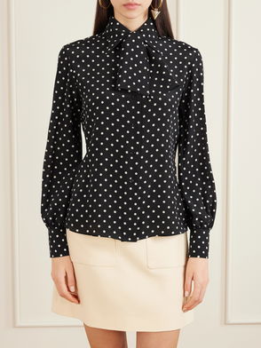 Tie-detailed Polka-dot Silk Crepe De Chine Shirt