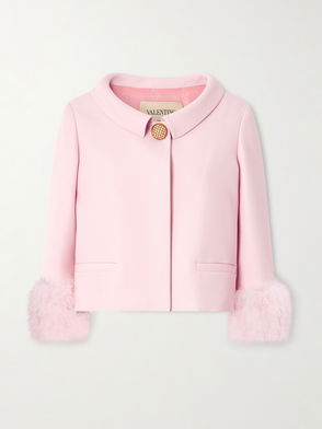 Embellished Feather-trimmed Wool And Silk-blend Crepe De Chine Jacket