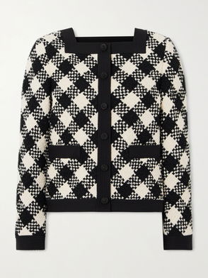 Bow-Embroidered Scoop-Neck Tweed Jacket