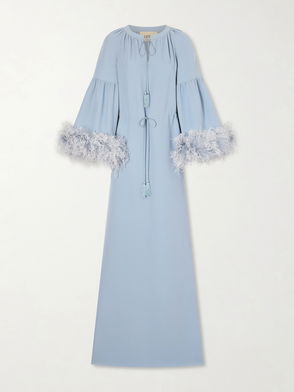 Tie-Detailed Feather-Trimmed Cady Midi Dress