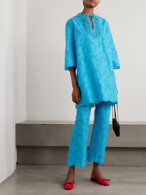 Taffeta-paneled Broderie Anglaise Cotton-blend Mini Dress
