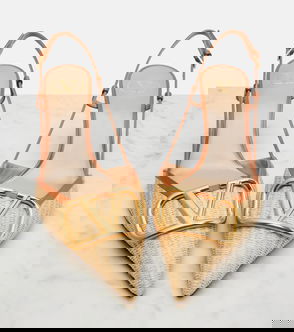 VLogo Leather-trimmed Raffia Slingback Pumps