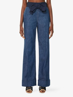 Printed Chiffon-Trimmed High-Rise Straight-Leg Jeans