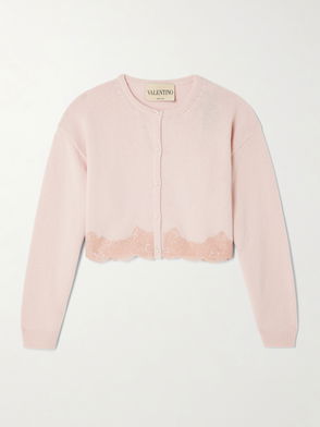 Lace-paneled Gathered Pointelle-knit Wool Dress