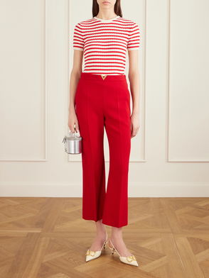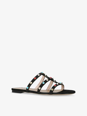 VLogo Embellished Leather-trimmed Striped Raffia Slides