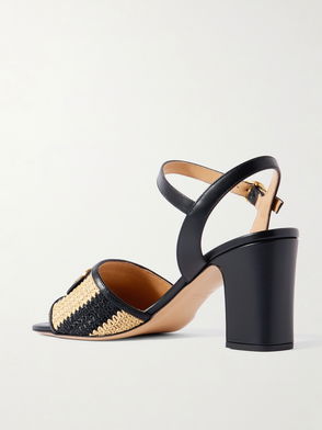 VLogo Signature 75 Embellished Leather-trimmed Striped Raffia Sandals