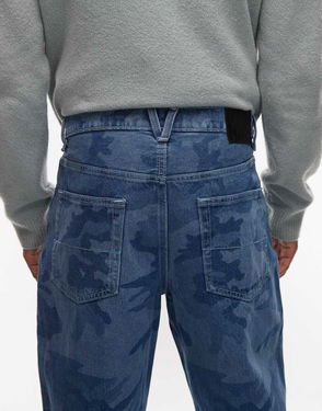 Check-5 Loose Fit Camo Printed Denim Jeans In Washed Blue