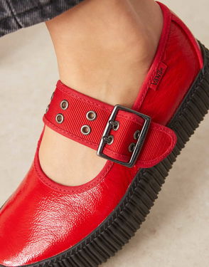 Mary Jane Platform Creepers In Red Metallic