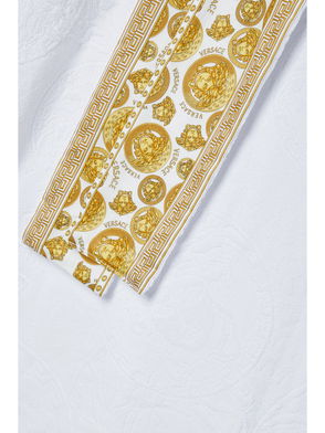 Printed Poplin-trimmed Cotton-terry Jacquard Robe