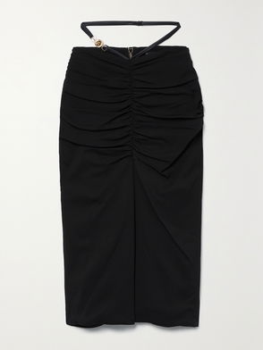 Asymmetric Printed Plissé-crepe De Chine Mini Skirt