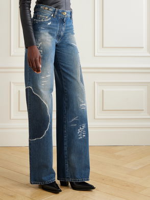Embellished Cutout Wool-Blend Slim-Leg Pants