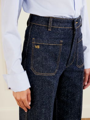 Alina Satin-trimmed Cotton-blend Velvet Wide-leg Pants