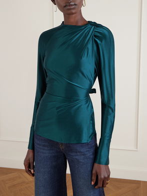 Gathered Silk Crepe De Chine Midi Shirt Dress