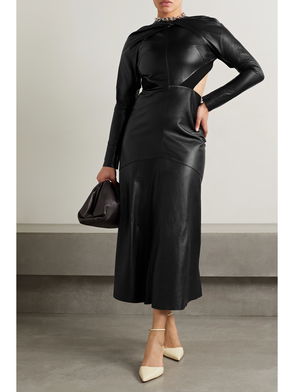 Twist-front Open-back Jersey-trimmed Leather Midi Dress