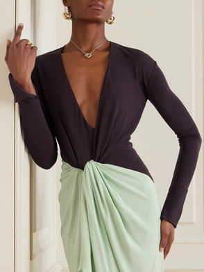 Tie-detailed Gathered Cut-out Stretch-jersey Gown