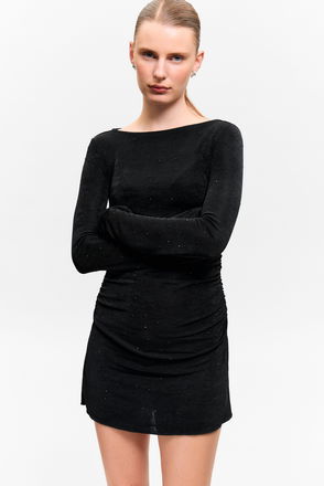 Gathered Long-Sleeved Boat-Neck Mini Dress