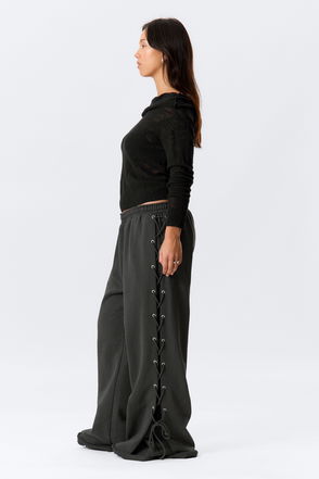 Low Rise Zip-Hem Satin Rhinestone Trousers