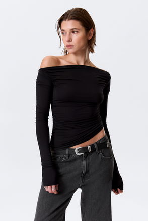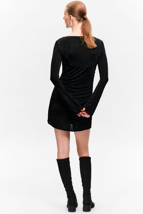 Gathered Long-Sleeved Boat-Neck Mini Dress