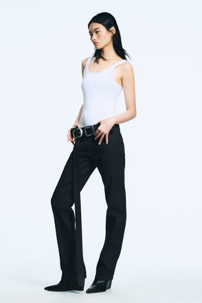 Low Rise Zip-Hem Satin Rhinestone Trousers