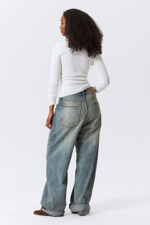 Dual High Waisted Loose Wide Leg Jeans