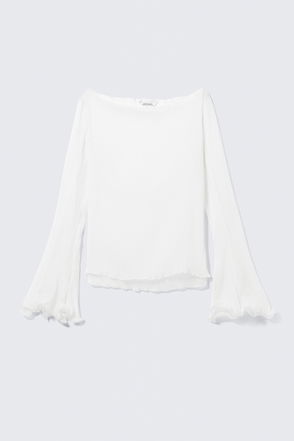 Sheer Boat-Neck Flared Sleeve Blouse