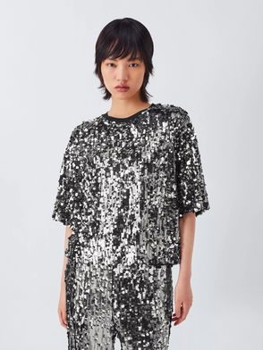 Weekend MaxMara Cacao Sequin Top, Black/Silver