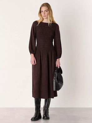 Petite Ruched Long Sleeve Cowl Neck Midi Dress