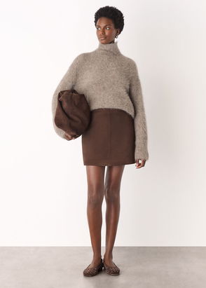 Brown Cashmere Seam Roll Neck Knit