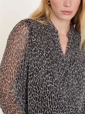Black/White Dragonfly Long Sleeve Blouse