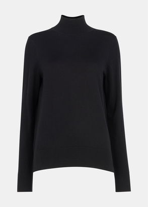 Black Fine Wool Mix Funnel Neck Knit
