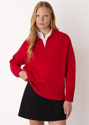 Wool Mix Split Funnel Wool Blend Knitted Jumper