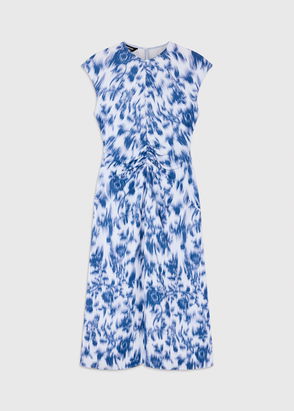 Blue/Multi Blurred Floral Crepe Dress