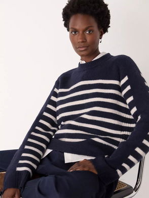 Contrast Stripe Wool Blend Jumper, Navy/Multi