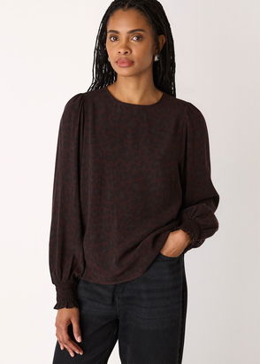 Animal Spot Long Sleeve Funnel Neck Jersey Top
