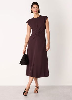 Cap Sleeve Gathered Midi Dress, Burgundy