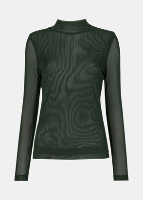 Dark Green High Neck Mesh Top