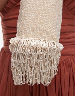 Capsule Embelished Bag With Beaded Fringe In Off White