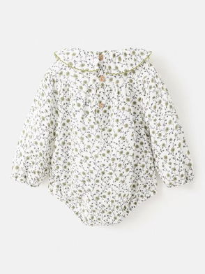 Baby Cotton Blend Floral Bodysuit, Natural White